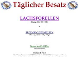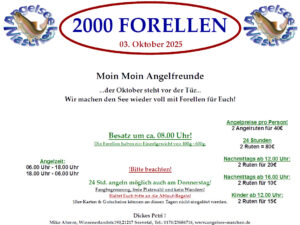 Die Besatz – Forellen haben ein Gewicht von 400g – 8000g.